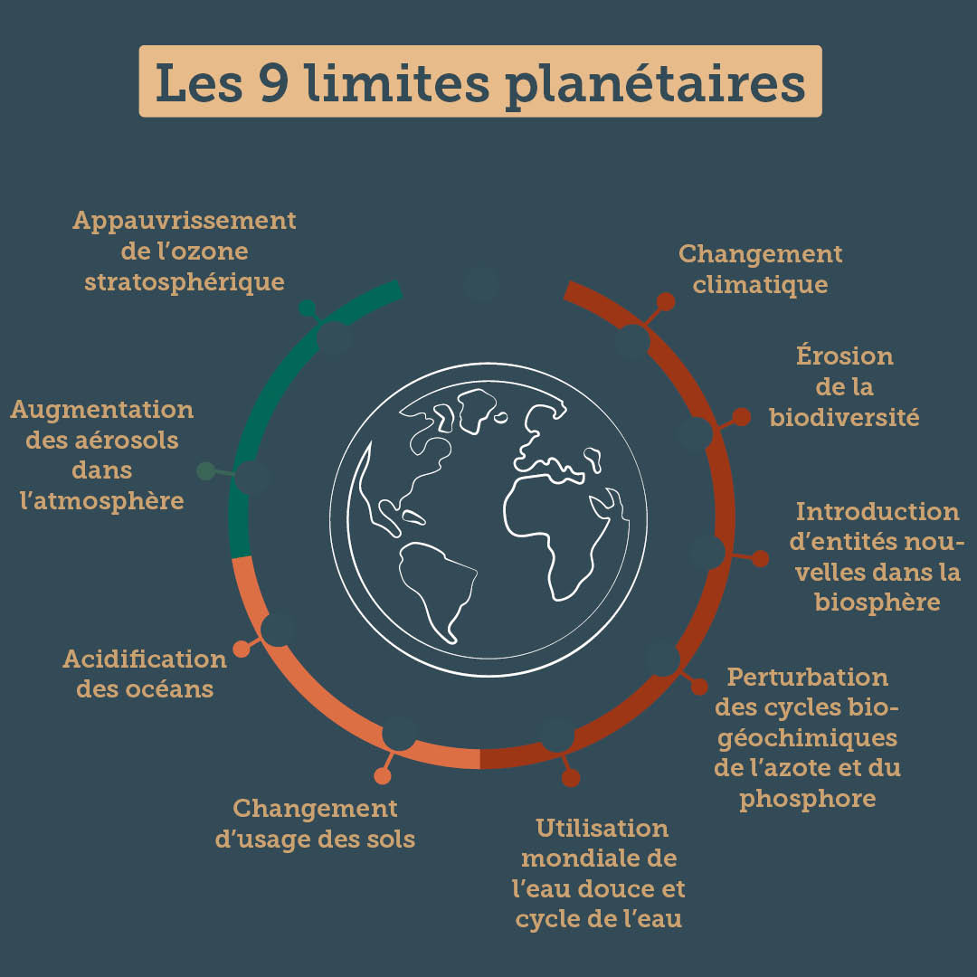 Formalisé en 2009 par Johan Rockström et le Stockholm Resilience Centre, le concept des neuf limites planétaires décrit les seuils écologiques à ne pas dépasser pour préserver la stabilité du système Terre. Ces limites portent sur le climat, la biodiversité, l’eau, les sols, et plusieurs cycles biogéochimiques. Si la septième limite a récemment été dépassées, à l’échelle mondiale, la France tente de réduire sa contribution via des politiques de transition écologique, avec des succès inégaux selon les domaines.